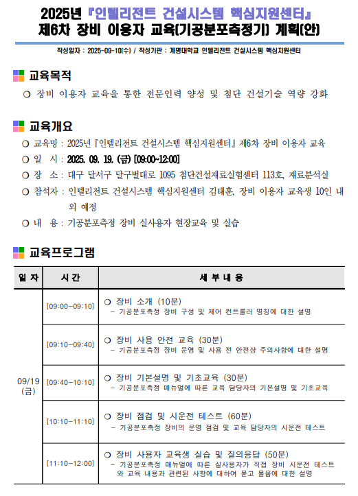 17 9월 2025년 『인텔센터』 제 6차 장비이용자 교육(분광광도계) 안내 Posted at 08:57h in 공지사항 by kyintel 0 Comments 교육 문의 : 053-580-8745~7 Share Print page back